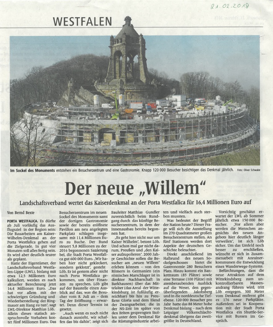 Am heutigen Mittwoch erschien ein Artikel über die Baustelle am Kaiser-Willhelm-Denkmal in Porta Westfalica.