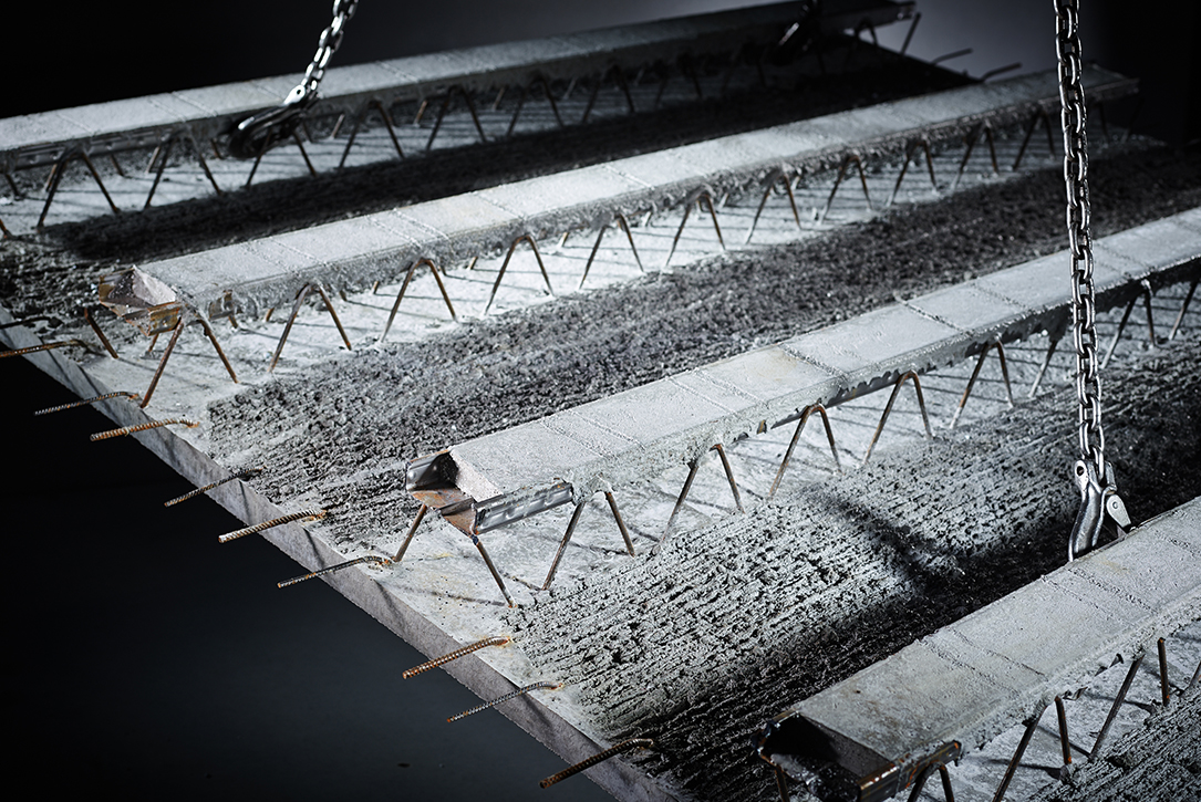 - Tragfähig ohne Unterstützung: Spezielle Gitterträger mit werkseitig ausbetoniertem Obergurt ermöglichen Spannweiten bis 5,00 m – ganz ohne Unterstützung auf der Baustelle