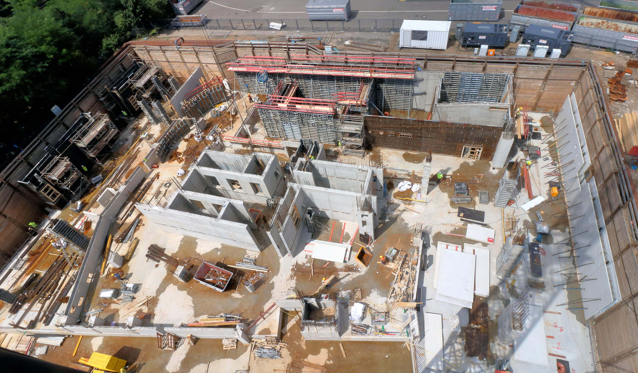 Direkt mit der Grundsteinlegung im Juni 2017 begann Lütkenhaus mit der Auslieferung der Doppelwände und Elementdeckenplatten für dieses beeindruckende Bauvorhaben, bei welchem es sich aktuell um das größte in ganz Nordrhein-Westfalen handelt.